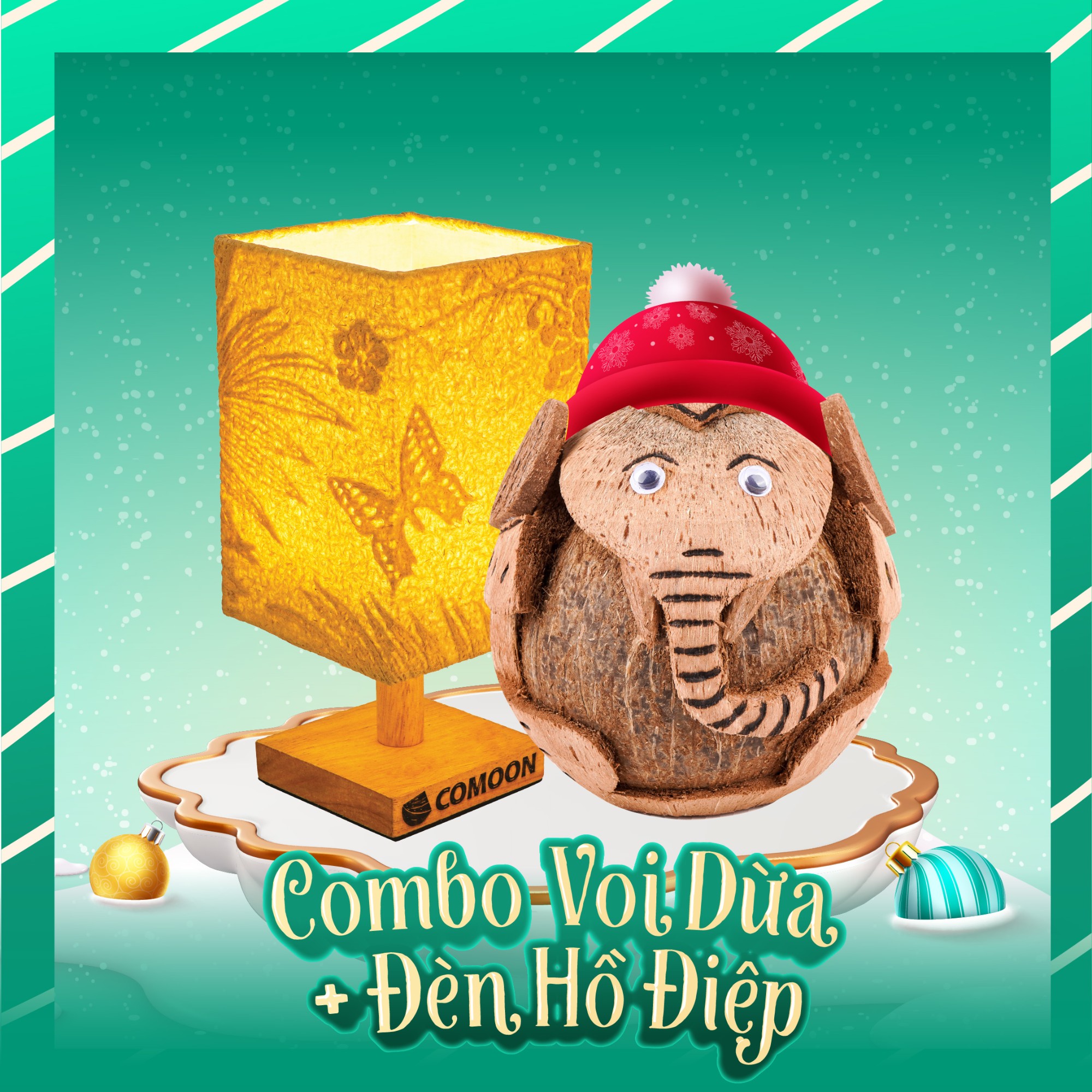 The gift set includes 01 coconut elephant + 01 butterfly lamp