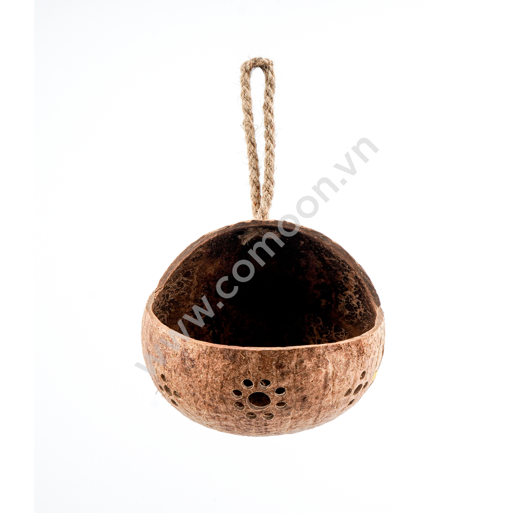 The COMOON Hanging Coconut Planter is crafted from natural coconut shells and produced in Vietnam. The product retains the coconut shell’s original rounded shape and raw, rustic surface, serving as an eco-friendly alternative to conventional plastic planters. By reusing coconut shells, the product helps reduce waste, minimize incineration or landfilling, and supports the development of a circular economy.