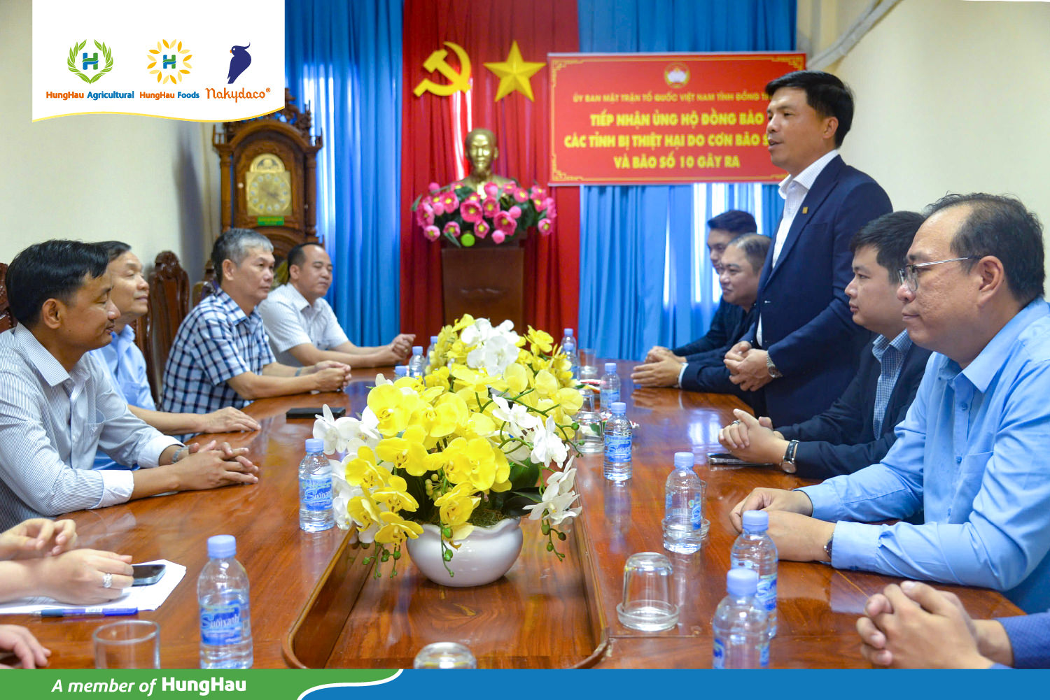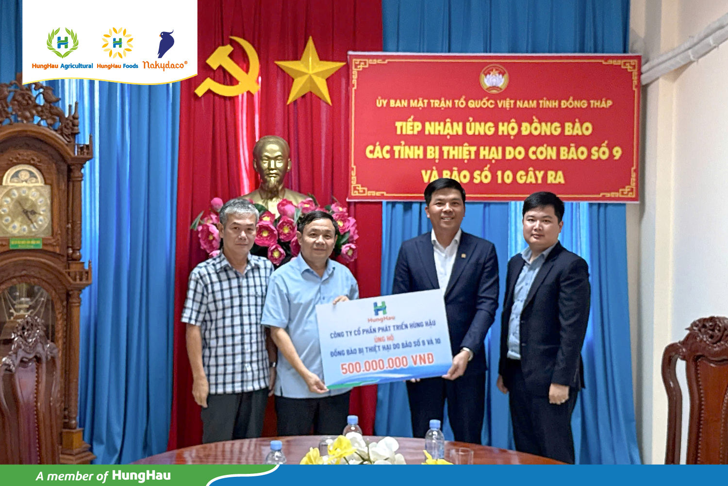 Đại diện Ngôi nhà Hùng Hậu – Ông Vũ Quang Chính – Chủ tịch Hội đồng Điều hành HungHau FMCG Group , đã đến Ủy ban Mặt trận Tổ quốc Việt Nam tại tỉnh Đồng Tháp, trao tặng 500 triệu đồng nhằm hỗ trợ công tác khắc phục hậu quả, giúp đỡ đồng bào tại các tỉnh thành bị ảnh hưởng bởi 2 cơn bão.