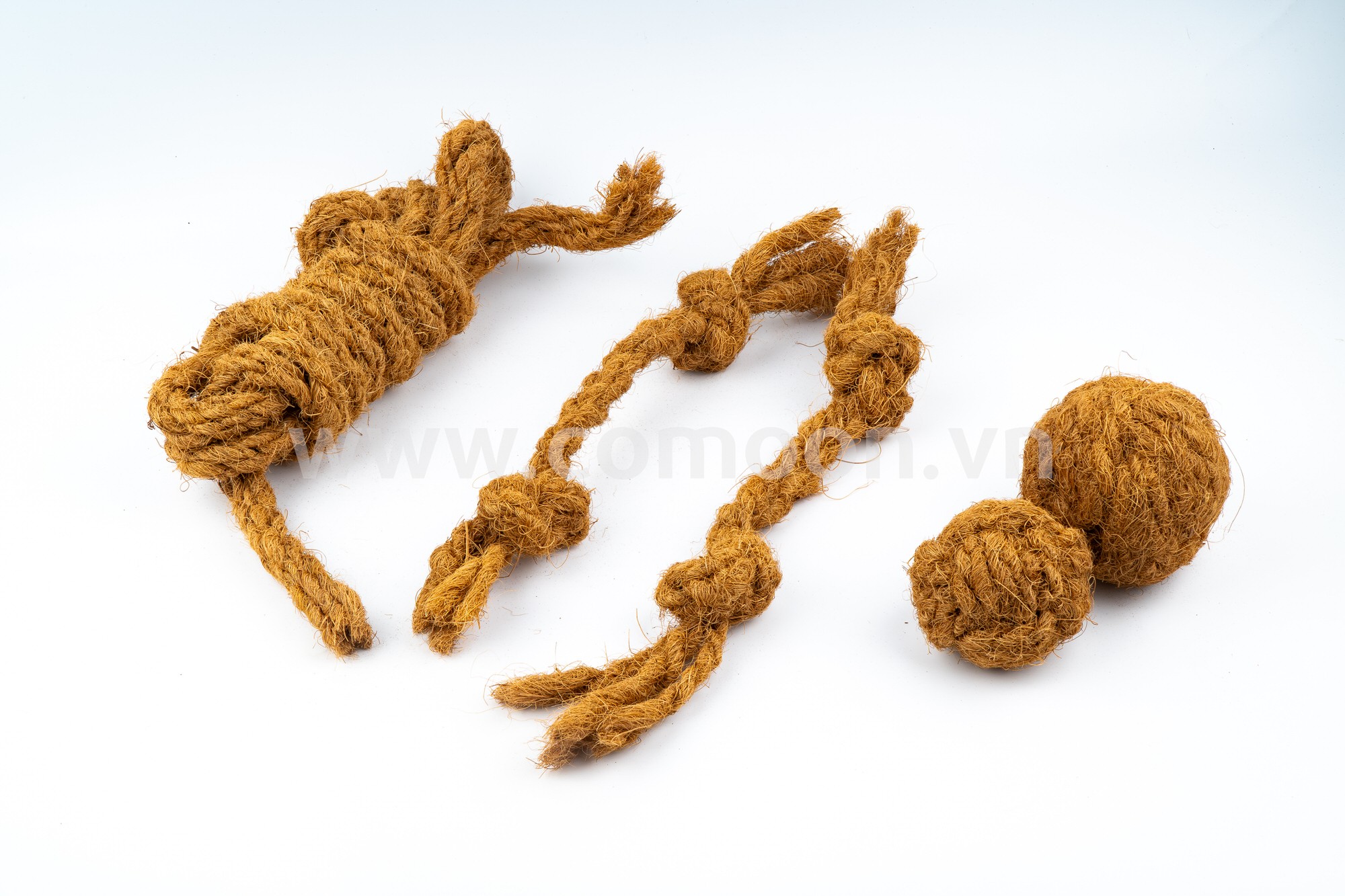 The COMOON Coconut Coir Pet Toy is manufactured from 100% natural coconut coir fiber, offering a safe and environmentally friendly product line for pets such as dogs and cats. The coconut fibers are thoroughly cleaned, processed, and tightly woven to ensure high durability, flexibility, and good tensile strength.