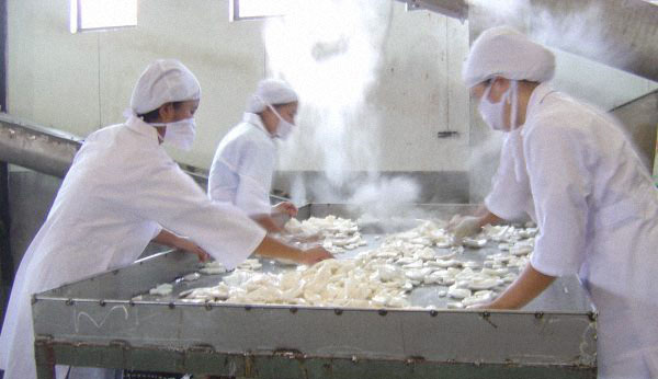 Nguyên liệu được đưa vào hệ thống sấy (sấy nhiệt hoặc sấy tầng rung) ở nhiệt độ khoảng 60-80°C trong 6-8 giờ. Quá trình sấy giúp giảm độ ẩm xuống dưới 3-5%, từ đó hạn chế vi sinh vật và kéo dài thời gian bảo quản. Đây là bước quan trọng để tạo nên độ giòn và hương vị đặc trưng.