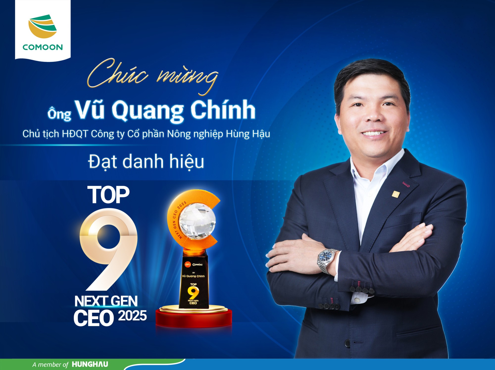 Công ty TNHH COMOON chúc mừng ông Vũ Quang Chính – Chủ tịch Hội đồng Điều hành HungHau FMCG Group (HungHau Holdings), Chủ tịch HĐQT HungHau Agricultural & HungHau Foods vừa được vinh danh trong Top 9 Next Gen CEO 2025.