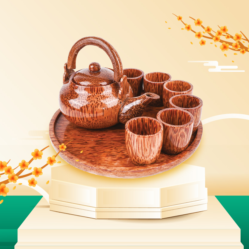 3️⃣Bộ ấm & tách trà COMOON: hàng thủ công mỹ nghệ dừa