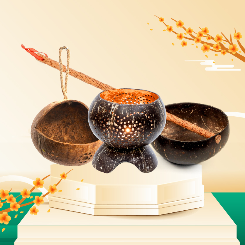 6️⃣Bộ décor gáo dừa (đèn gáo dừa & gáo dừa trang trí)