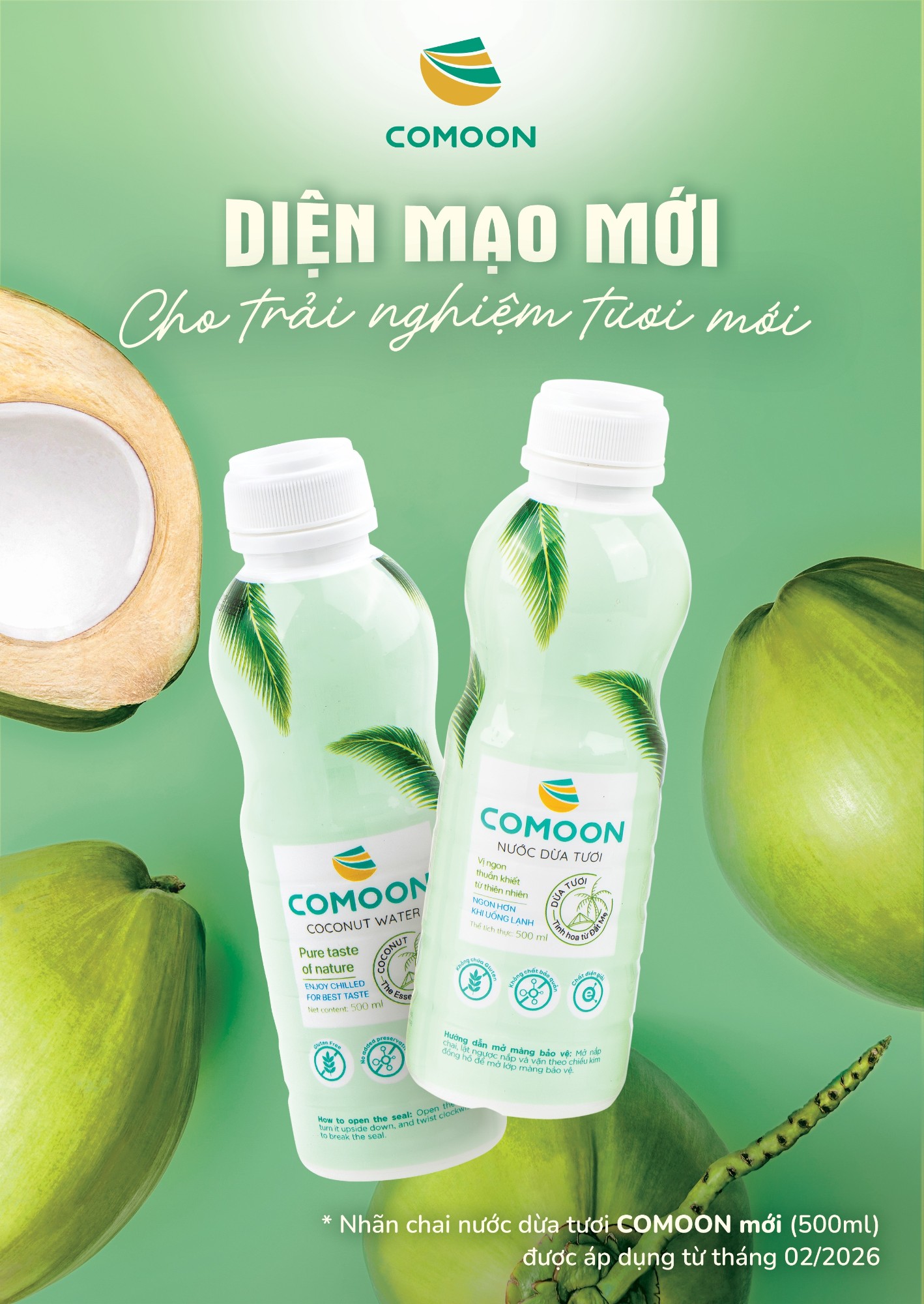 Kính mời Quý Khách hàng, Đối tác cùng trải nghiệm diện mạo mới của nước dừa tươi COMOON 500ml tại các hệ thống phân phối của chúng tôi từ tháng 02/2026.