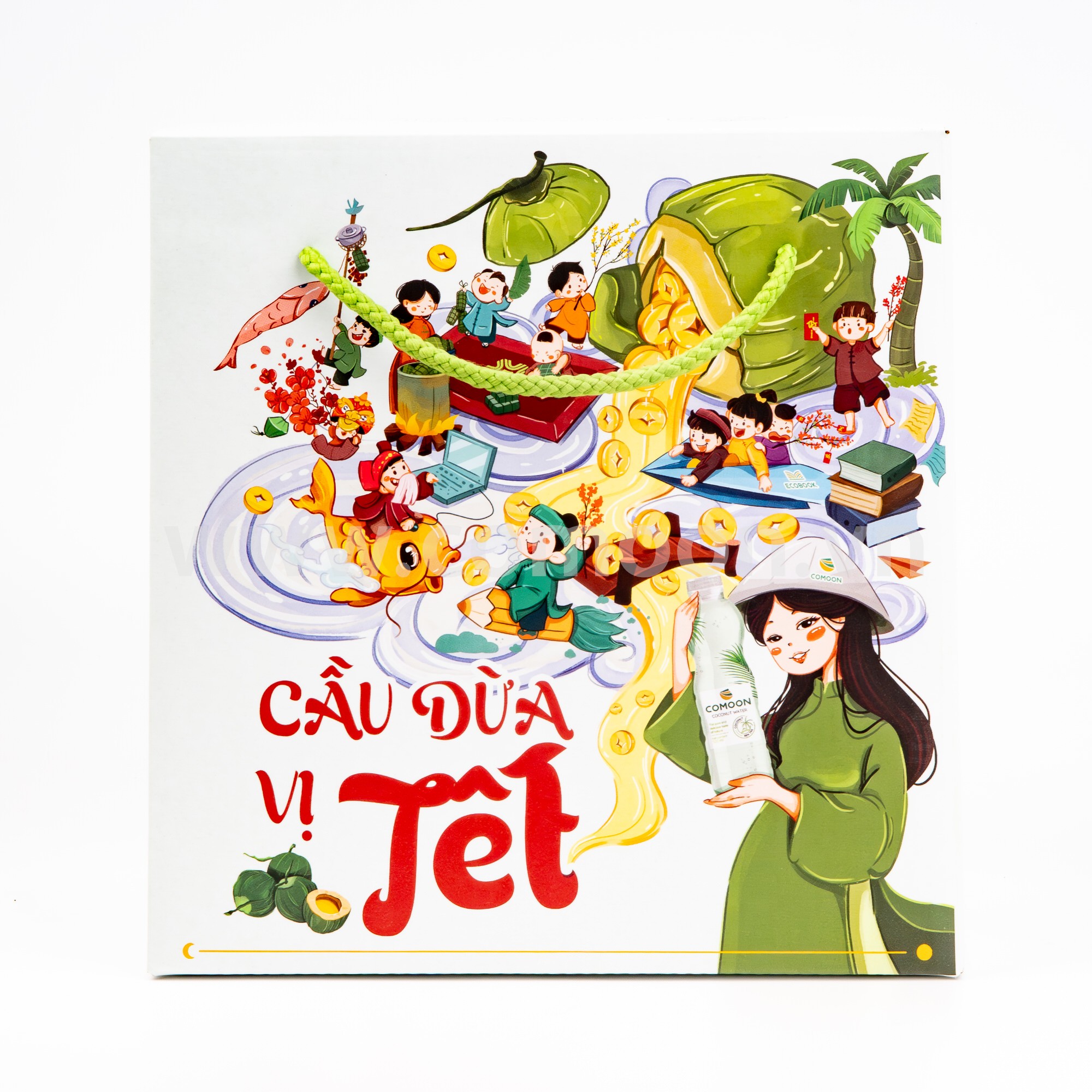Lấy cảm hứng từ hình ảnh trái dừa quen thuộc của miền đất Bến Tre (nay thuộc tỉnh Vĩnh Long), lễ hộp quà Tết COMOON được tạo nên như một lời chúc đầu năm mộc mạc: cầu bình an, cầu sức khỏe, cầu sung túc đủ đầy. Bao bì tái hiện không khí Tết truyền thống: trẻ con nô đùa, lộc vàng sum suê, cả gia đình quây quần bên nhau trong những ngày đầu năm.