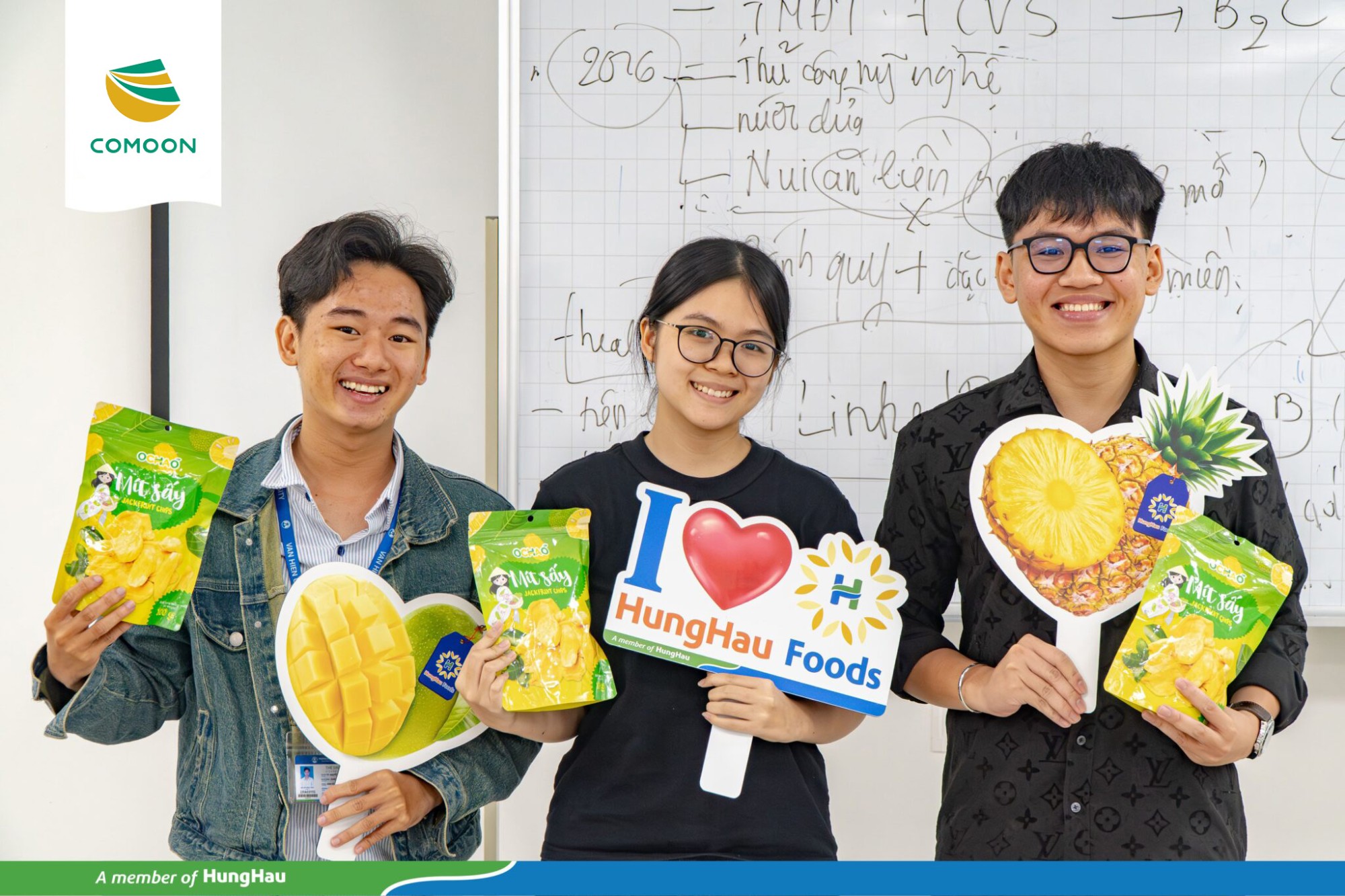 Đón tiếp và hướng dẫn các em sinh viên Văn Hiến là CBQL và chuyên viên đến từ Ban Phát triển Kinh doanh, Ban Hành Chính Nhân sự và Ban Sản phẩmVận hành. Thông qua các buổi giới thiệu doanh nghiệp, các em được hiểu thêm về cơ cấu tổ chức, lĩnh vực hoạt động và các sản phẩm chủ lực của COMOON. Đặc biệt, hành trình mang tinh hoa nông sản quê hương ra toàn cầu của COMOON cũng đã phần nào truyền cảm hứng cho tất cả các em.